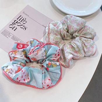 Accesorios para el cabello de tela dulce niña colorida gasa floral intestino grueso lazo para el cabello Cola de Caballo diadema